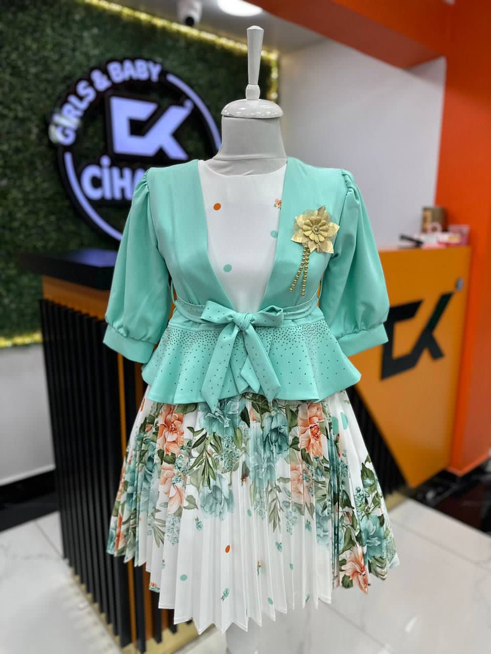Yellow, green Red gown